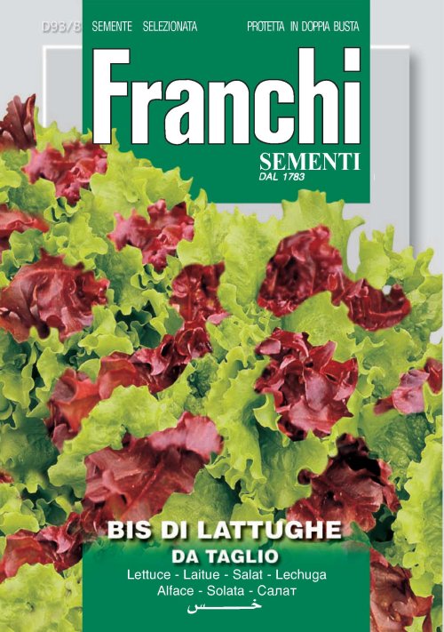 Misticanza Duet. Frilly cutting lettuce mix, red & green. 35 days or so to cutting size (4-6"). Nice taste & texture and looks good in the salad. 12 gram packet