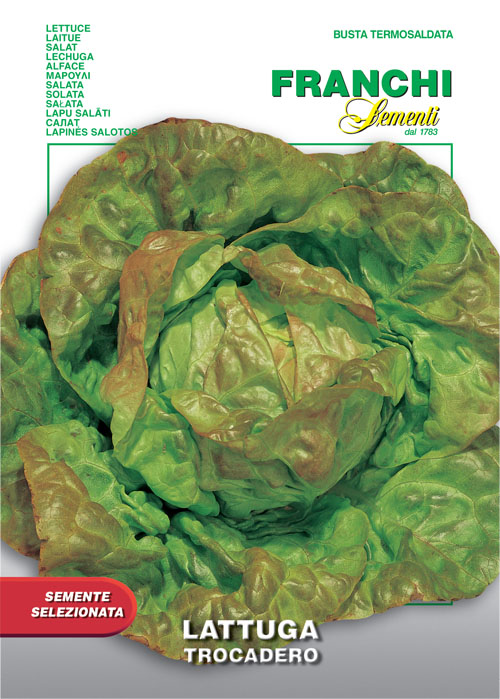 LETTUCE TROCADERO. Early variety. Cap good-sized, round and good texture. slightly blistered leaves, tender and crisp, green with red tinge to the edge.