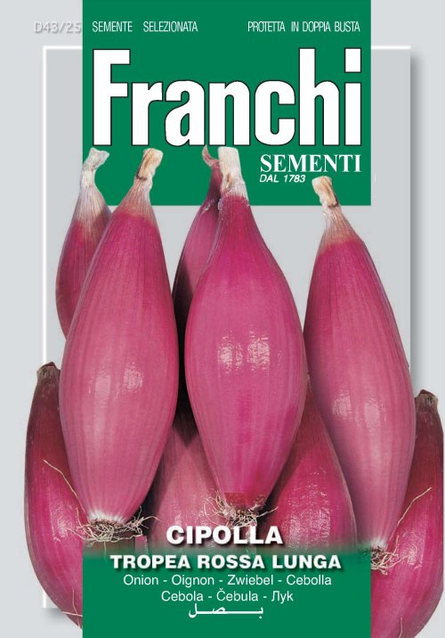 Mid-early variety. Red/pink onions from Tropea in Southern Italy have been famous for centuries. These elongated bulbs with pinkish skin are great for eating raw and in salads. They will keep for a few months. Direct seed or transplant in spring. Thin to 10cm apart in rows